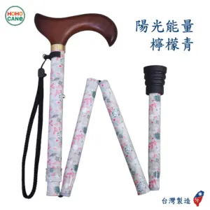 實木水花紋握把摺疊拐杖手杖五段高度調整